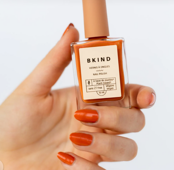 BKIND’s vegan, 77% plant-based, 21-FREE, professional-grade nail polishes apply easily, dry quickly, and give you a long-lasting, luminous finish.