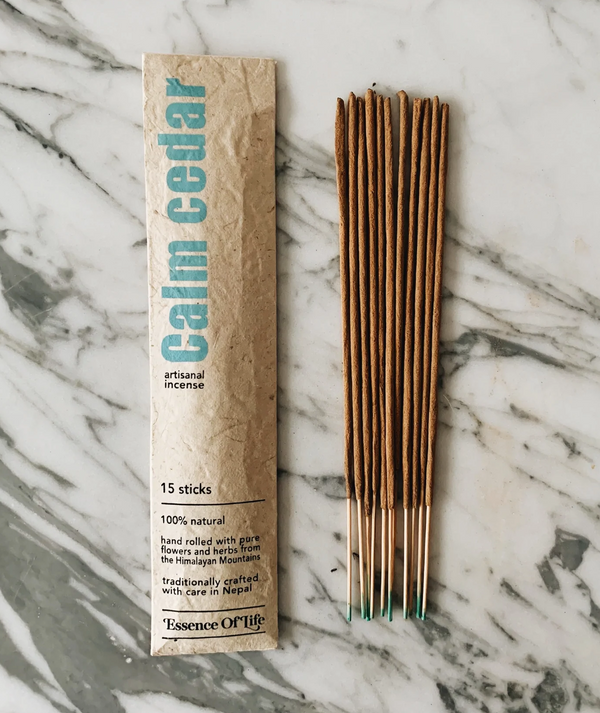 This handcrafted Artisanal incense produces a clean-burning, rich, earthy and pure aroma. Used to purify the environment and as an aid for meditation, these ancient recipes help to calm and soothe a restless mind. Hand rolled ethically and sustainably in Nepal in small batches. Each stick is made by grinding the herbs, flowers and spices into a powder and then dipping the sticks in resin, rolling the ground herb onto the stick, and then sun-drying.