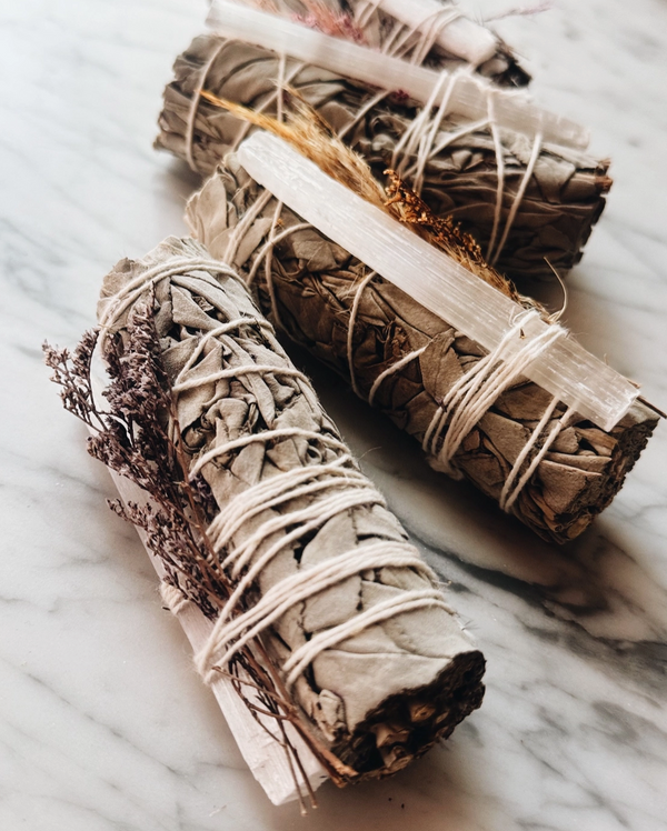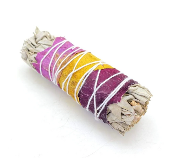 - dried rose petal bundle - white sage bundle - white sage smudge stick - rose petal smudge stick