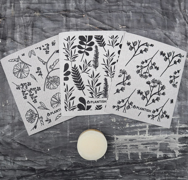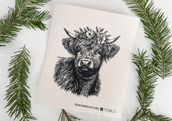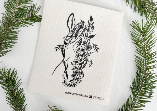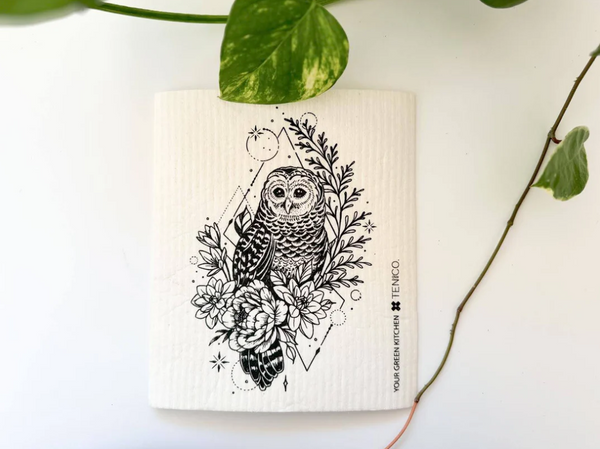 The sponge cloth has been a staple in Swedish kitchens for over 60 years and can absorb 15x its own weight in liquid (up to 3/4 of a cup). Sponge cloths replace the use of up to 17 rolls of paper towel, reducing the plastic packaging and overall waste in landfills.