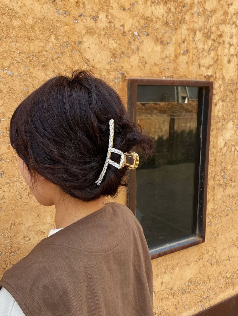 Gold Metal Hair Claw with White Twist Detail