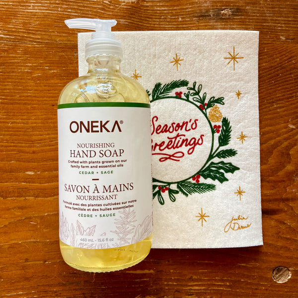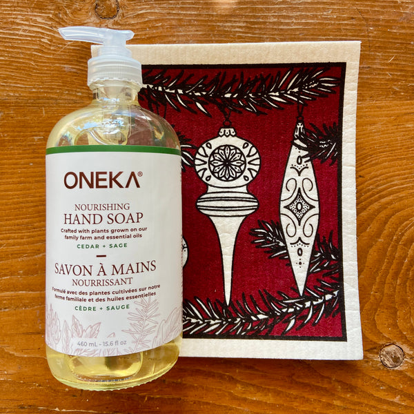 Holiday Gift Set- Oneka Hand Soap + Holiday Sponge Cloth