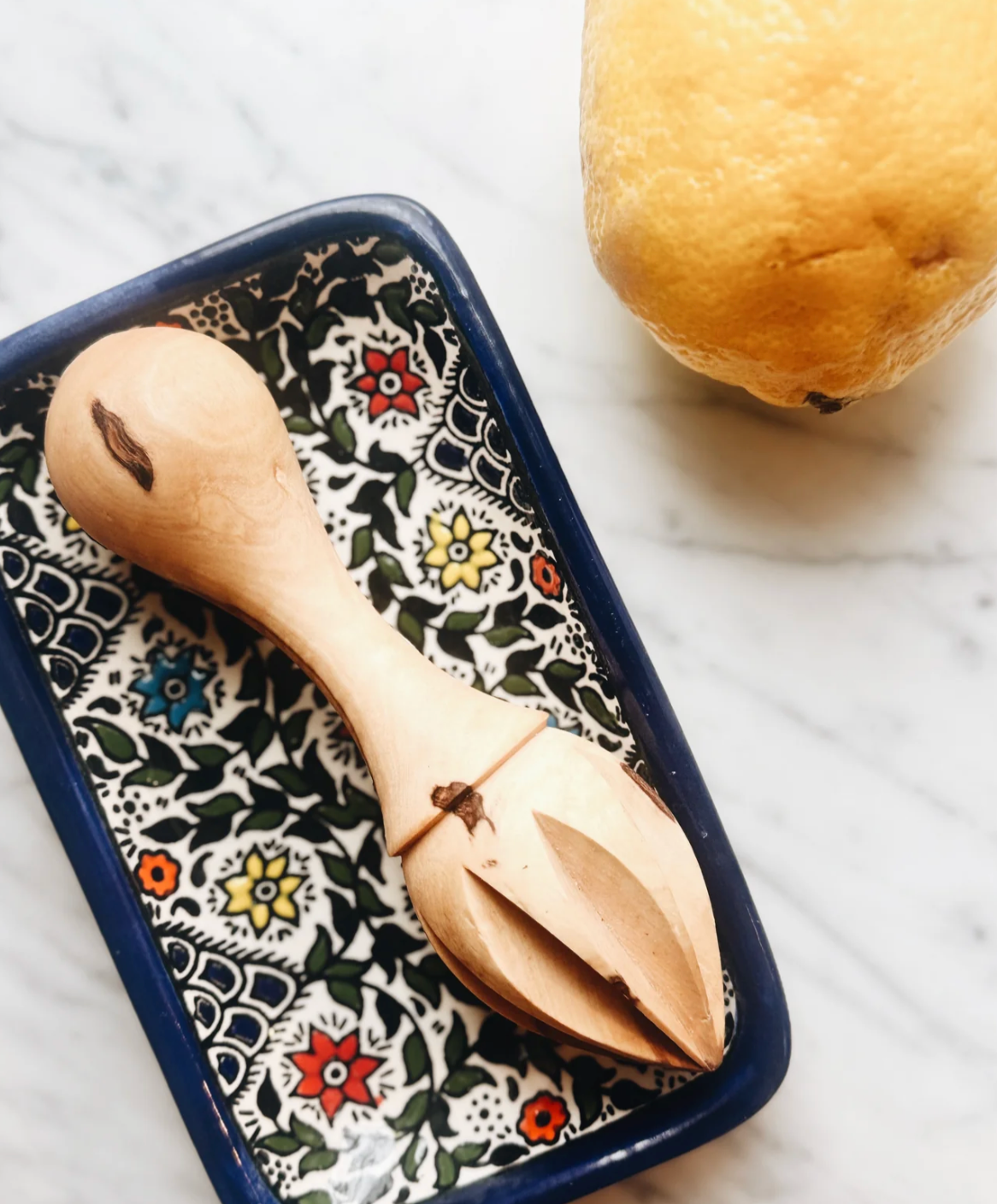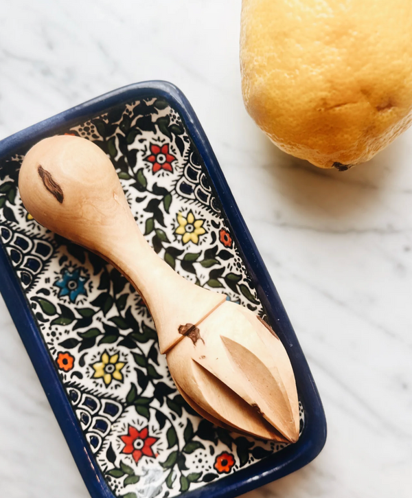 Crafted in Palestine from meticulously pruned olive-wood branches, this handmade olive-wood lemon squeezer combines refined functionality with meaningful impact. The dense, smooth grain of authentic Palestinian olive wood provides excellent durability and leverage, enabling efficient citrus extraction with minimal pressure. Its ergonomically contoured design ensures a secure, comfortable grip, allowing you to produce clean, pulp-free juice from lemons, limes, and other small citrus with ease—an ideal addition to both everyday cooking and professional kitchens.