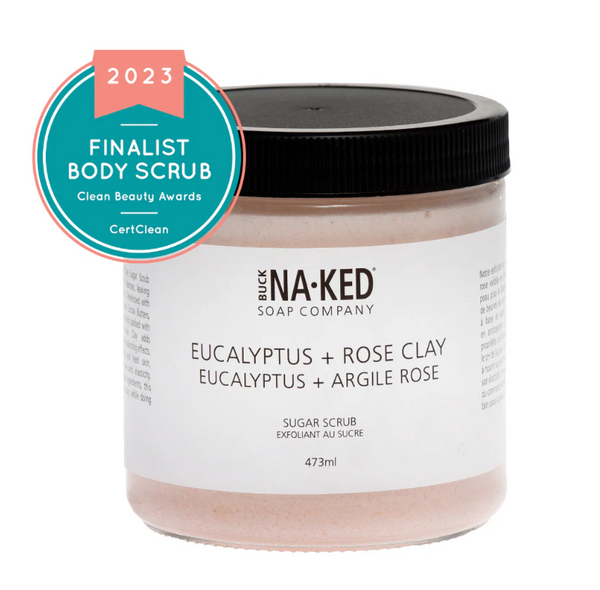 EUCALYPTUS + PINK CLAY: Pink Clay adds additional cleansing and pH balancing effects. This scrub helps detoxify and feed skin, while improving tone and elasticity.