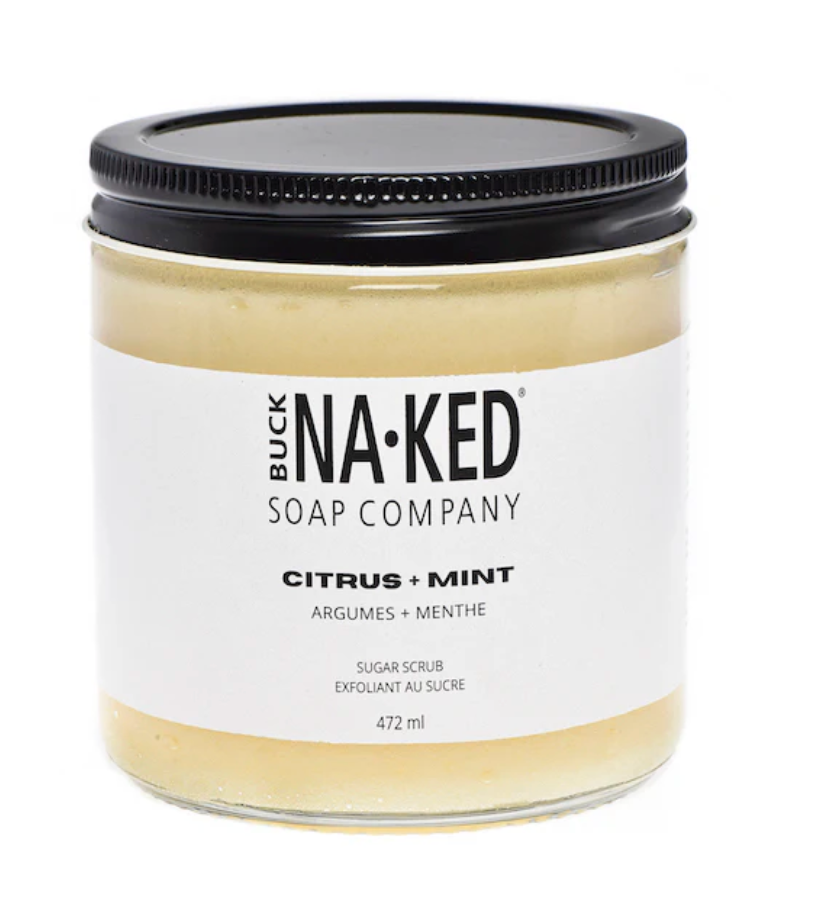 Buck Naked Sugar Scrub gently exfoliates while it cleanses, leaving your skin silky and smooth. Developed with rich, moisturizing Shea and Cocoa Butters, our formula is soap based and packed with vitamins, antioxidants, and the detoxifying elements of organic Canadian sea tree charcoal. Formulated with fair trade ingredients, this scrub does good for your skin, while doing good for our world.