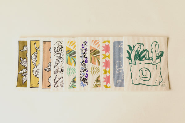 Designed by local artists, our sponge cloths are 100% compostable making them a sustainable alternative to regular dish cloths or paper towels. Enjoy a variety of adorable designs created right here in Kawartha Lakes. Perfect for everything from everyday cleaning to gift giving.